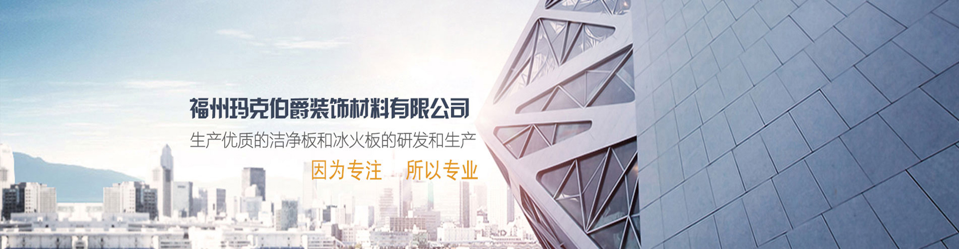 福州瑪克伯爵裝飾材料有限公司成立于2002年,是一家專業(yè)研發(fā)A級防火材料和生產(chǎn)內(nèi)外墻可替代裝飾材料的公司,主要價格生產(chǎn)各類工程裝飾用品:冰火板、醫(yī)用抗菌板、保溫一體板、隧道板等,產(chǎn)品具有防火防水、綠色環(huán)保、無毒、無煙無排放、抗菌、A級防火等多項技術(shù)優(yōu)勢。